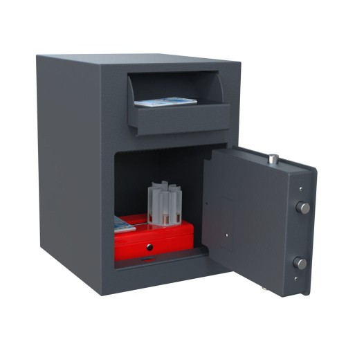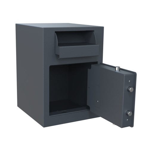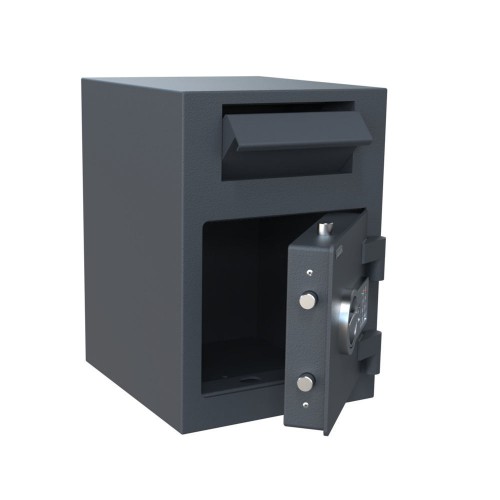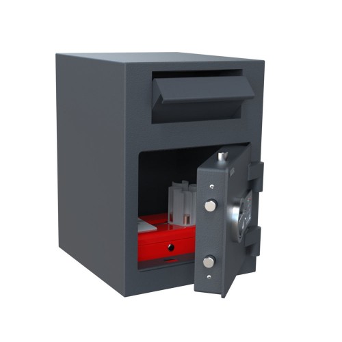 Er kan een batterij aan de buitenzijde van het toetsenbord worden aangesloten. Hiermee kan het slot weer geactiveerd worden. Zodra de kluis weer geopend is, kunnen de batterijen aan de binnenzijde vervangen worden.